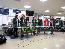 今年は、平成28年12月21日(水)16時20分から約40分間、医科診療棟2階外来ホールにおいて、鹿児島大学医学部・歯学部合同軽音楽部FAWNMATESのメンバーが「あわてんぼうのサンタクロース」「We Wish You a Merry Christmas」 などのクリスマスにちなんだ曲を8曲披露しました。