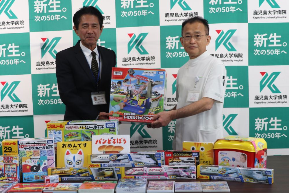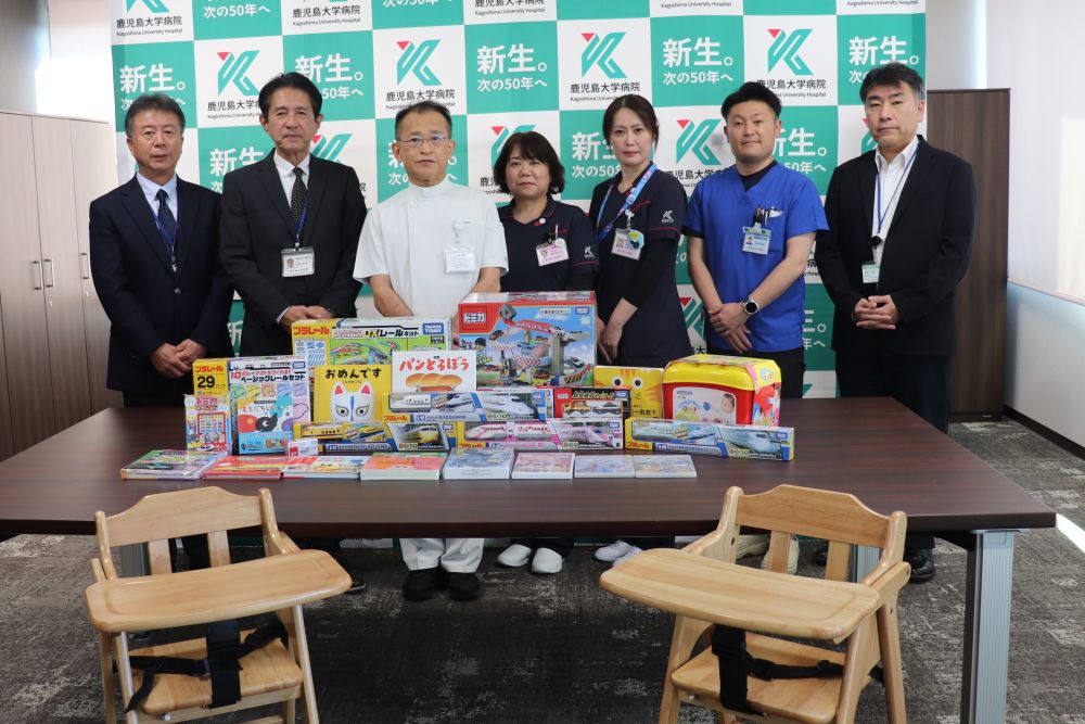 寄附受納式には、一般財団法人 親和会 島森俊光 理事長、内山保一 常務理事にご出席いただき、小児科病棟の患者さんへ絵本や知育玩具、DVDなどを寄附いただきました。